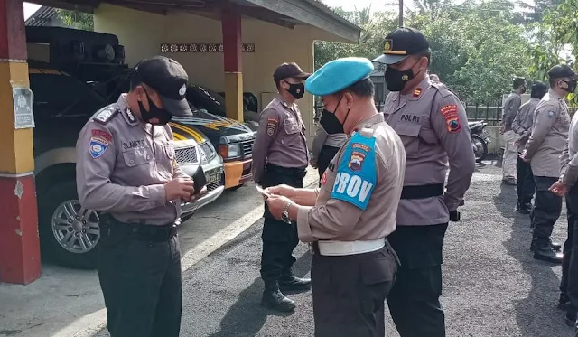 Purbalingga – Kapolsek Kutasari Polres Purbalingga Iptu Tedy Subiyarsono didampingi Kanit Provos Aiptu Nuriman menggelar penegakan ketertiban dan disiplin (gaktibplin) bagi anggota. Kegiatan dilaksanakan usai apel pagi di halaman Mapolsek, Rabu (16/6/2021).