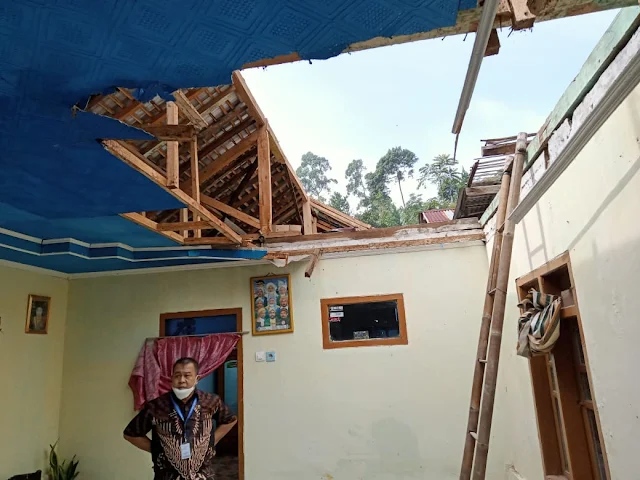 Hujan Deras Di Sertai Angin Puting Beliung Yang Mengakibatkan Rumah Rusak Di Desa Karangsari Dan Desa Gambuan Kecamatan Pulosari